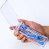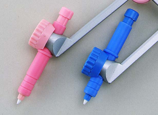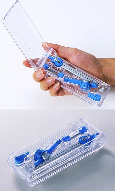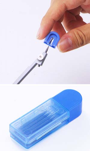 学童用コンパスのリニューアルとして、新しい便利な特徴満載のコンパスを提案してみました。 最大の特徴は本体よりもケースにあり、ケース表面に5mm間隔で並んだ窪みに針と鉛筆の先を当てることで、定規がなくても簡単に半径を5mm単位で調節することができます。他にも針と芯の両方をカバーする安全キャップや、替え芯ケースに隠された芯削器など、他にはないアイデアを思いつくままに盛り込んでみたつもりです。しかも価格も安い!!